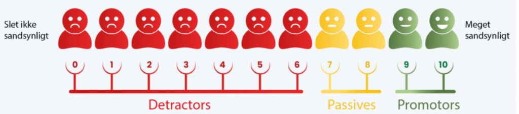 NPS er enkelt opbygget med gruppering af respondenterne i tre kategorier.